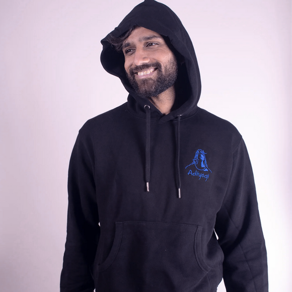 100 % Cotton Knitted Adiyogi Hoodie - Black