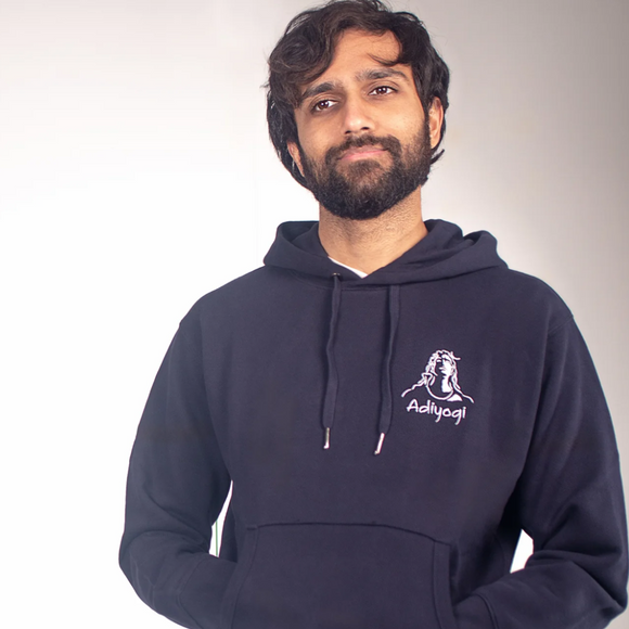 100 % Cotton Knitted Adiyogi Hoodie - Navy Blue