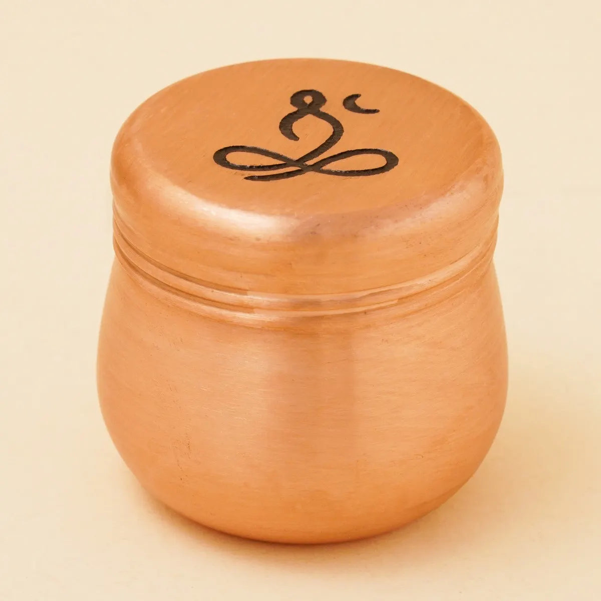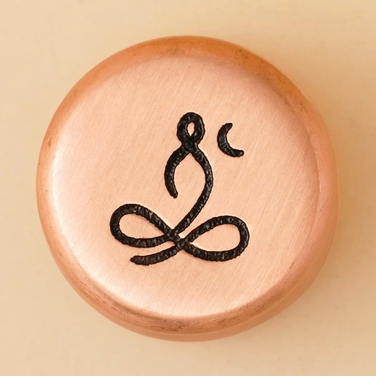 Carry Vibhuti, or the sacred ash, with you in this beautifully crafted Copper Vibhuti Box. The lid is adorned with the symbol of a Sadhaka, the devoted seeker on the path of inner exploration. The crescent moon above signifies the importance of going beyond the dimension of logic and tuning into the intuitive ways of looking at life. Designed to preserve the sanctity of Vibhuti, this compact and elegant box ensures that the sacred ash remains untouched by external elements, ready to support your yogic practices.
