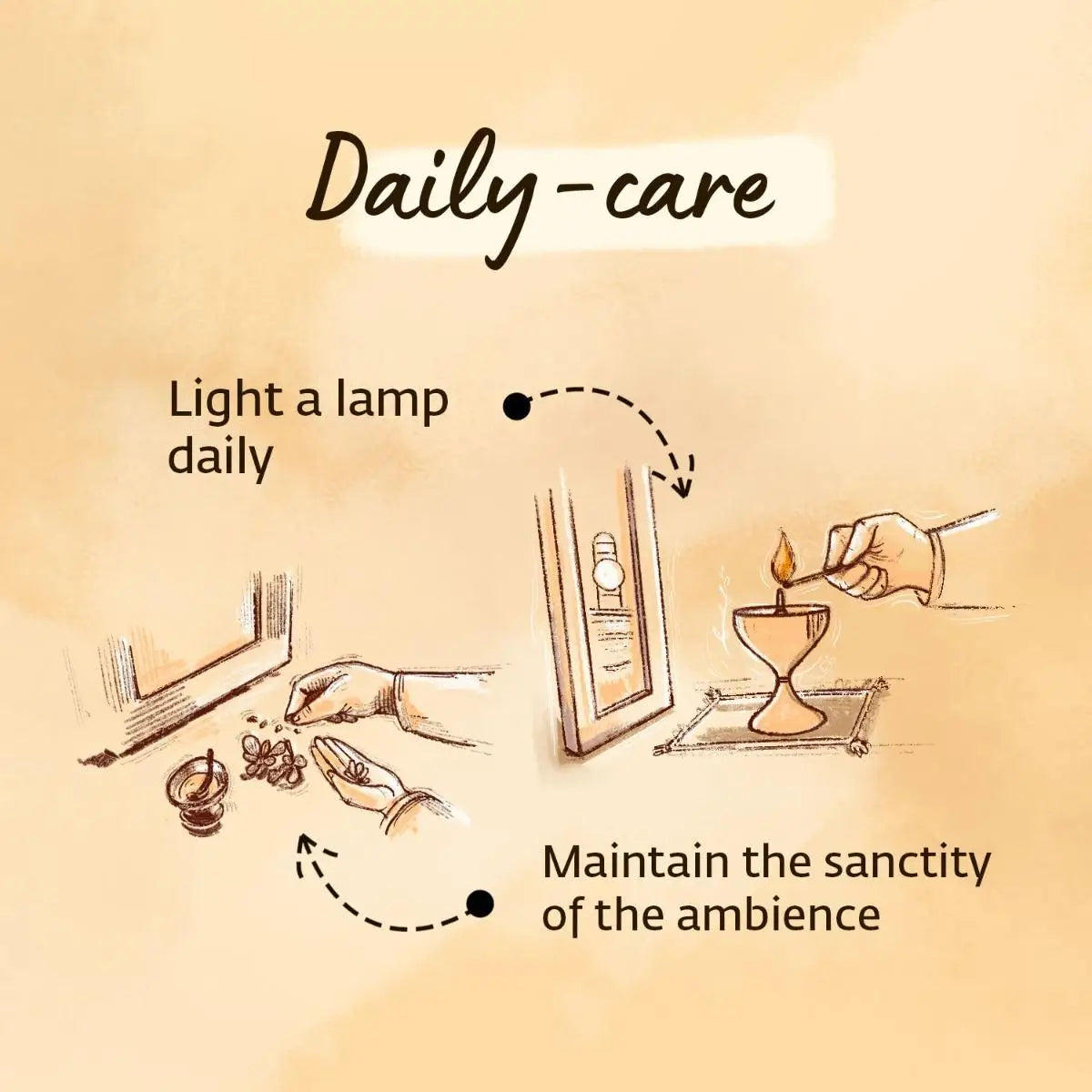- An oil or ghee lamp and flower may be offered on a daily basis.