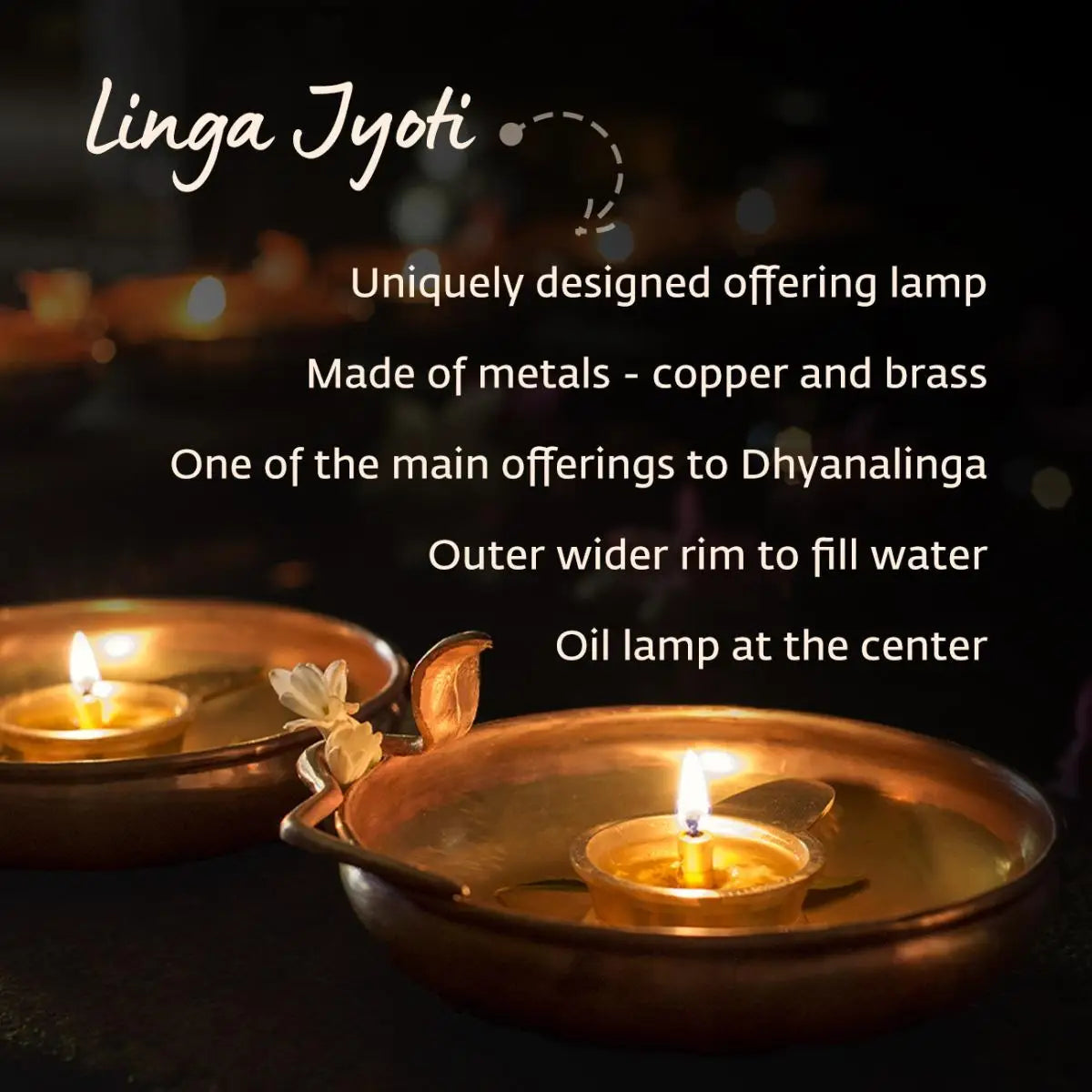 Crafted with copper and brass, Linga Jyoti lamp is a Energized offering by Isha Life, made available for you to create an ambience of energy and positivity in your home.